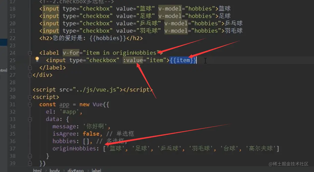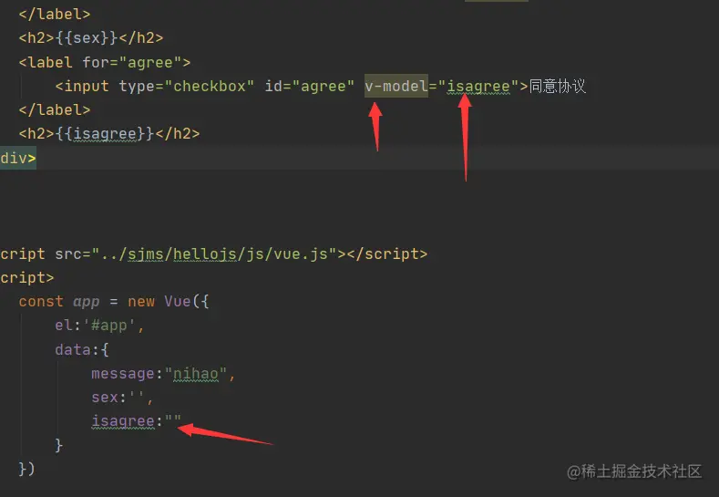 v-model结合checkbox