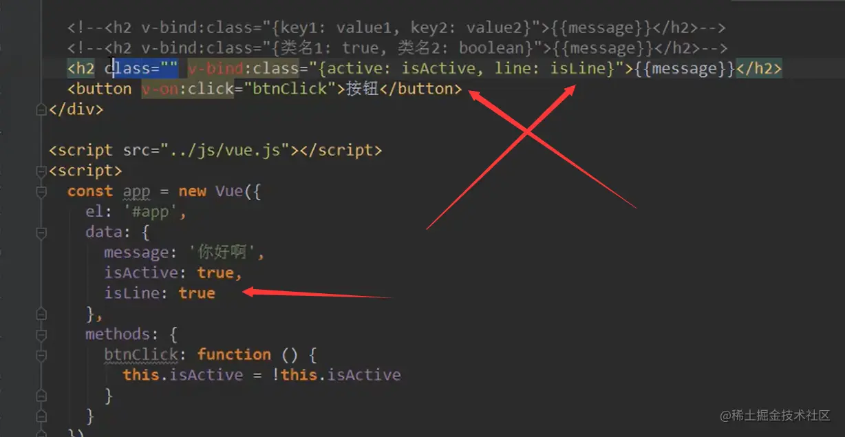v-bind的数组参数,如果式true,显示该属性,flase取消该属性