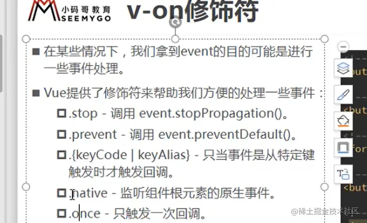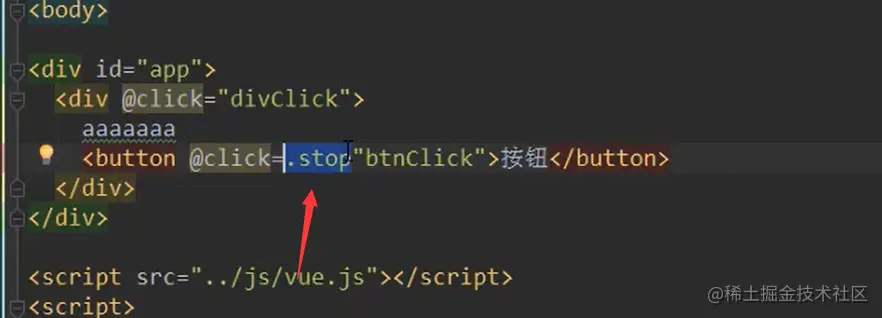 1、(@事件=.stop)在按钮的外面一层也有事件,如何实现点击按钮,不会触发外层的事件?
