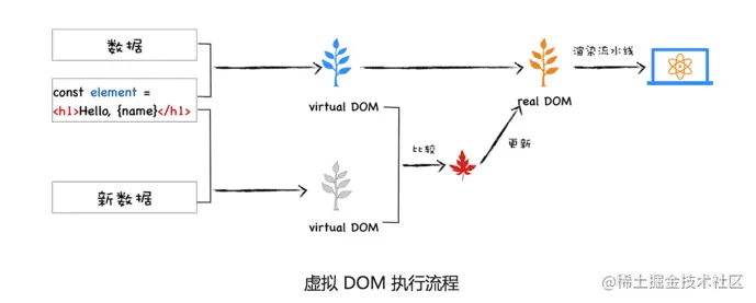 - 将页面改变的内容应用到虚拟 DOM 上,而不是直接应用到 DOM 上