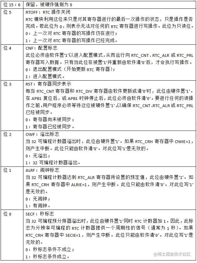 2.2 RTC 的控制寄存器——RTC_CRL 寄存器
