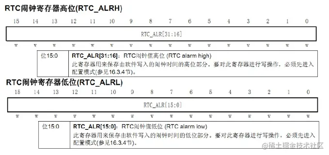 2.6 RTC 闹钟寄存器——RTC_ALRH寄存器和 RTC_ALRL寄存器