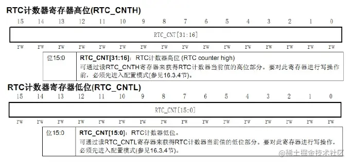 2.5 RTC 计数器寄存器——RTC_CNTH寄存器和RTC_CNTL寄存器