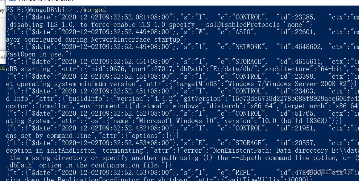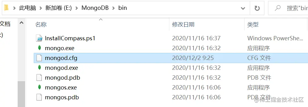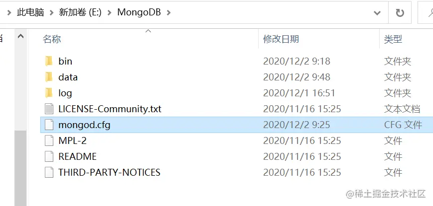 看了个文档说是在E:\mongod下整个配置
