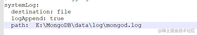 在mongod.cfg配置日志和数据存储目录