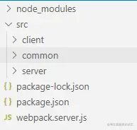 首先,在项目下创建一个文件夹 src,在里面放置三个文件夹 client (客户端代码),common(共同的代码),server(服务端代码)。