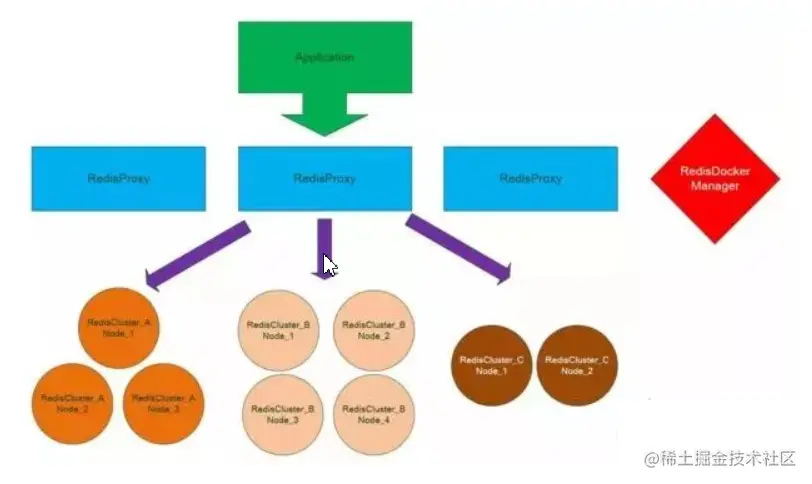 当然重客户端方式不好,并且我们要做的是缓存,不仅仅是单单的 Redis,于是我们会做一个 Redis 的 Proxy,提供统一的入口点。