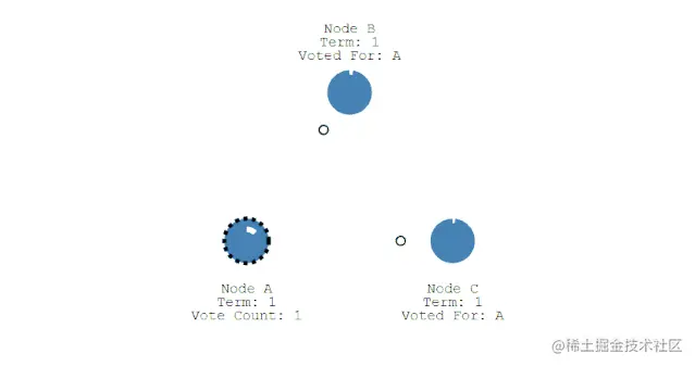 ② 此时 A 发送投票请求给其它所有节点。