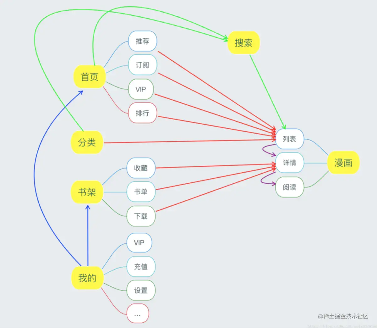 - 但是经过考虑 你肯定会想到,这是一个漫画类应用,那么肯定就会有一个通用的漫画列表和漫画详情乃至最后的漫画阅读应该作为一个漫画模块