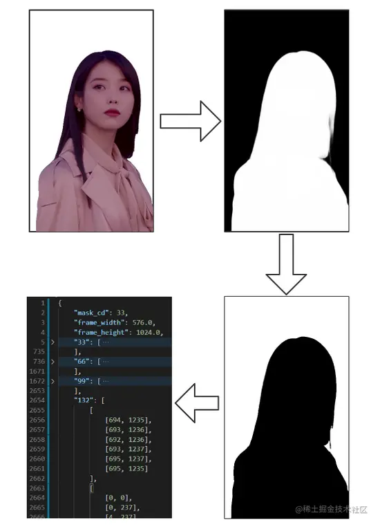 web前端实现要比native实现简单,这里稍微提及一下。服务端处理数据流程是不变的,但是如果只需要对接web前端, 就不用将灰度图转换为json配置 。这得益于webkit浏览器内核帮我们做了很多工作。