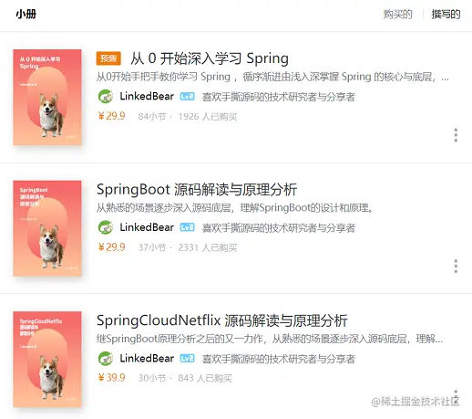 如果你要问我这一年最大的精力都放在哪里,那毫无疑问是掘金的两本小册了。继 2019 年 11 月 《SpringBoot 源码解读与原理分析》小册发布之后,2020 年 6 月,第二本小册《SpringCloudNetflix 源码解读与原理分析》,以及 9 月的第三本小册《从 0 开始深入学习 Spring 》也都陆续发布,而且目前 Spring 小册还在继续连载更新中。