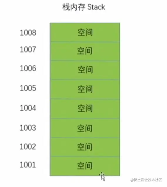 原始值:存储在栈(stack)中 的简单数据,也就是说它们的值直接存储在变量访问的位置