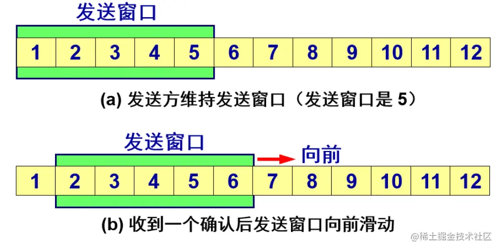 位于滑动窗口内的分组都可以连续发送而不需要等待对方的确认,这样提高了信道利用率。发送方每收到一个确认的时候就把滑动窗口向前移动一个分组的位置,接收方采取累计确认的方式对按序到达的最后一个分组发送确认,这样表示:到这个分组为止的所有分组都已经收到了确认。