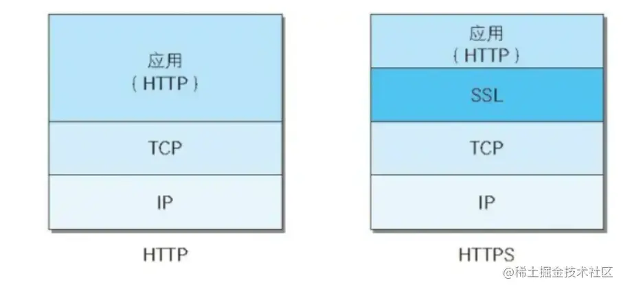 HTTPS是在HTTP上建立SSL加密层,并对传输数据进行加密,是HTTP协议的安全版。 HTTPS解决了HTTP中使用明文传输不安全的问题,对传输数据进行了加密。看看下图,HTTPS也就是在应用层和传输层之间多了SSL层, 在采用SSL后,HTTP就拥有了HTTPS的加密、证书和完整性保护这些功能。