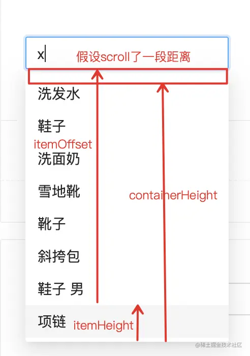 当当前在第一项时,按下上键,此时的 containerScrollTop 为 itemOffset的值