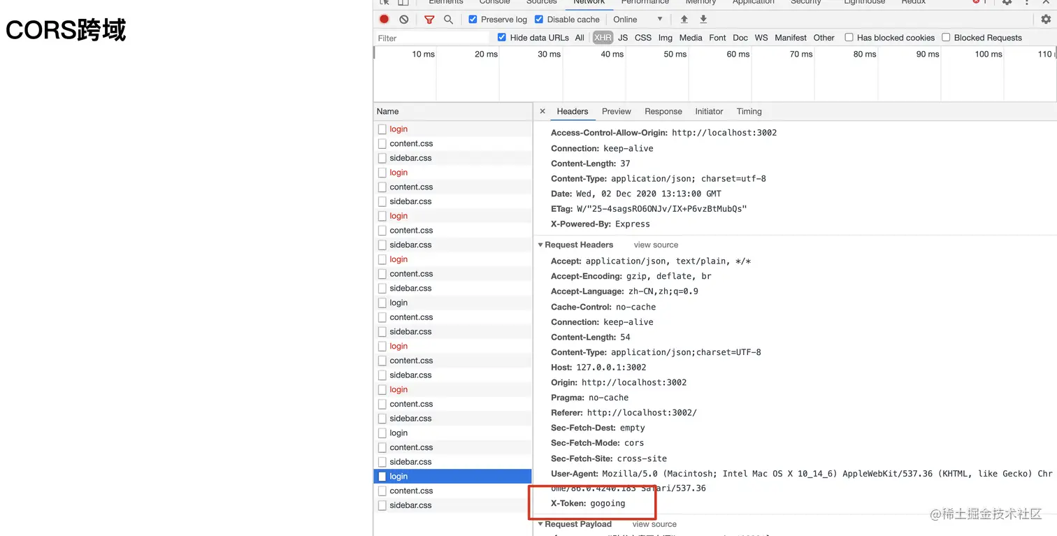 res.header('Access-Control-Allow-Headers', 'Content-Type,X-Token');