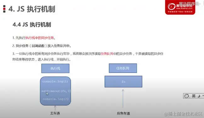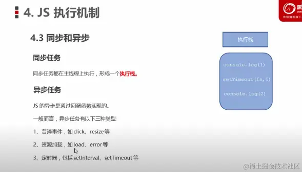 js 的执行机制:1、执行栈中的同步任务 2、任务队列 放到执行栈中