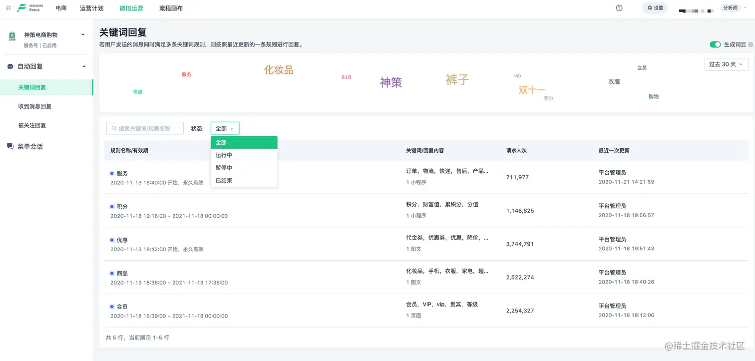 其中,电商企业尤甚。布局微信生态,公众号、小程序、企业微信、社群等已是基本素养,如何利用“运营工具”产生聚合效应才是致胜关键。 下面,本文将以电商为例,介绍如何利用运营工具——神策营销云,在微信生态中抢占这 4.5 亿人乘 N 元的巨量红利?