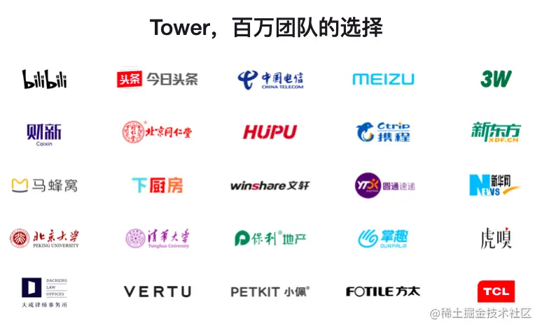 目前,Tower 已经为近百万团队提供协作工具,在互联网、教育、零售等领域均形成了成熟解决方案,如 Bilibili、YY 欢聚时代等多家头部企业均使用 Tower 实现了轻量高效的团队协作。