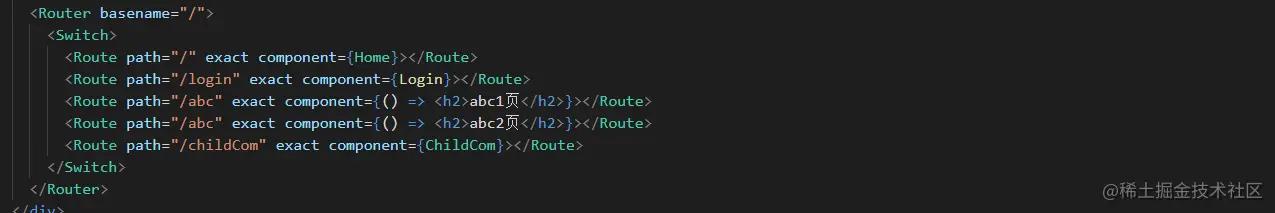 Switch默认匹配符合的第一个路由,例如图2 只显示 abc1页