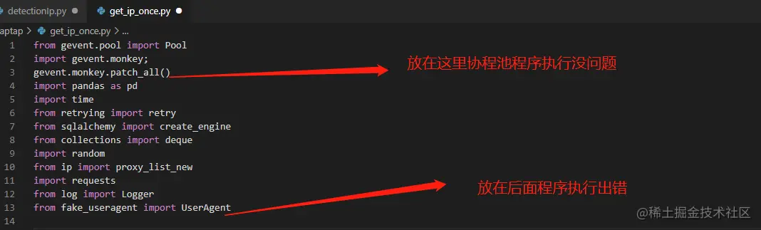 这里说明了要导入其他模块之前必须要导入猴子补丁