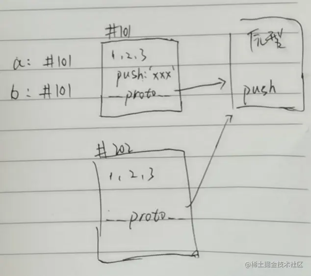 - 都存着相同的原型的地址但: