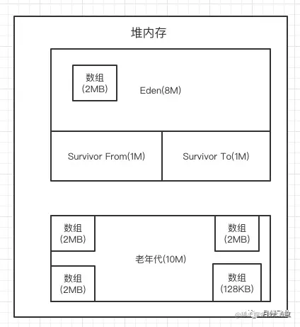 最后在CMS Full GC执行完毕之后,其实年轻代的对象都进入了老年代,此时最后一行代码要在年轻代分配2MB的数组就可以成功了