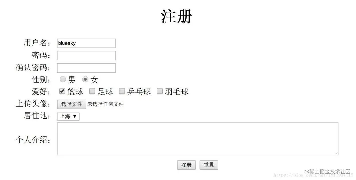 <input type="reset" value="重置" />