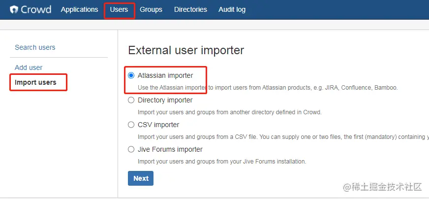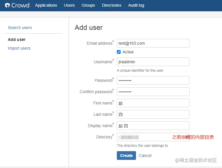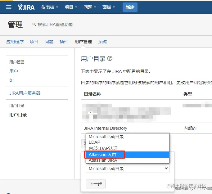 不管 JIRA 是否已经创建过用户和组,这里都需要导入一遍,因为JIRA系统管理员和默认的组需要导入过来使用不过得注意,导入时应当选择刚刚创建的internal Directory(内部目录):xxxxx
