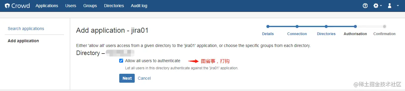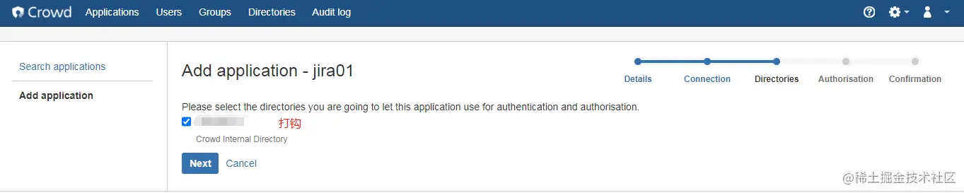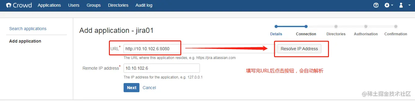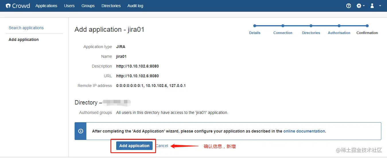 a. 在crowd中,新建application。 步骤和新建jira application一样。