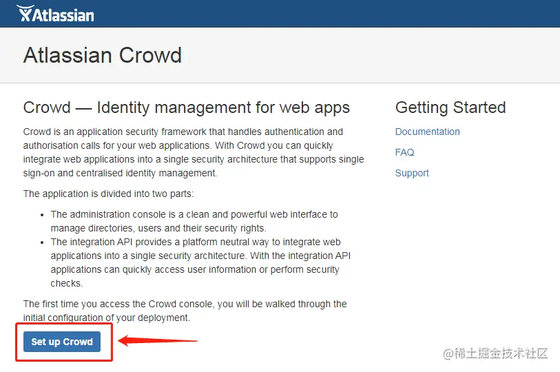 **3.5 通过浏览器访问http://127.0.0.1:8095 来配置crowd