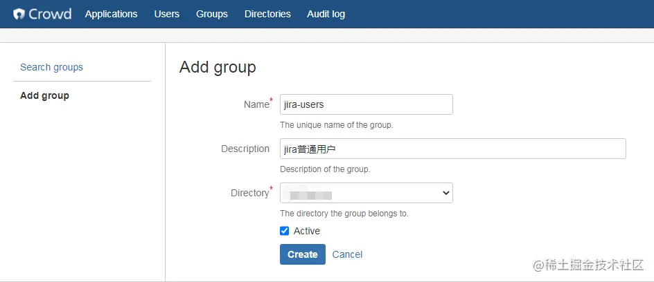 b. 新创建组: jira-users, jira-developers, jira-administrators,confluence-users, confluence-administrators