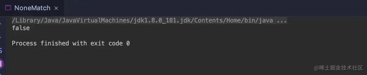- noneMatch 数据流中得没有一个元素与条件匹配的