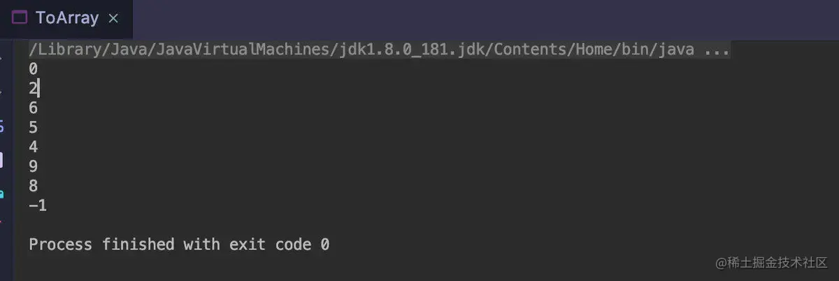 Object[] objects=Stream.of(0,2,6,5,4,9,8,-1)