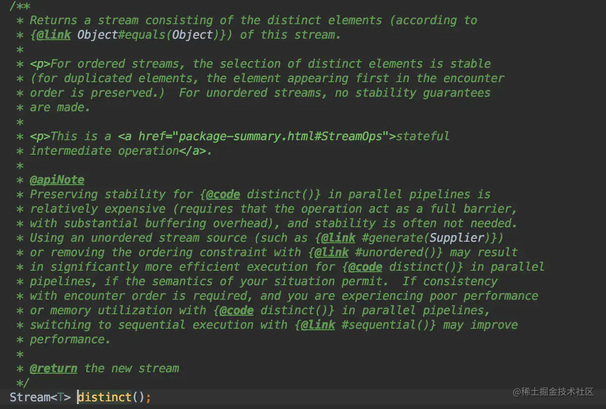 - distinct 将根据equals 方法进行判断,如果要对自己自定义的bean 去重,则需要 重写equals方法,但是这不是唯一的方法,后面文章我将带大家实现自定义(bean 的某个字段去重)去重。