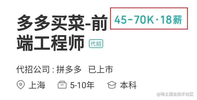 拼多多于8月上线了“多多买菜”这个新业务,招聘网站显示,一个前端工程师,年薪开到了80w~126w。