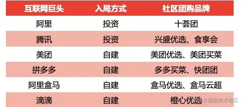 除了拼多多在大力发展“买菜”业务外,国内互联网巨头也纷纷入局,比如阿里、腾讯、美团等公司都在开展社区团购业务。