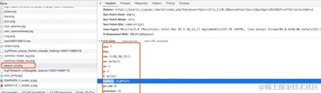 点开Hearders拉到最下面,在它的参数中sex是性别,stc是年龄,p是分页,listStyle是有照片