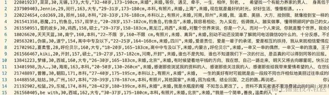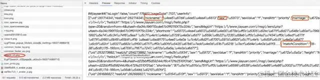 翻了几页找到一个search_v2.php的链接,它的返回值是一个不规则的json串,其中包含了昵称,性别,是否婚配,匹配条件等等