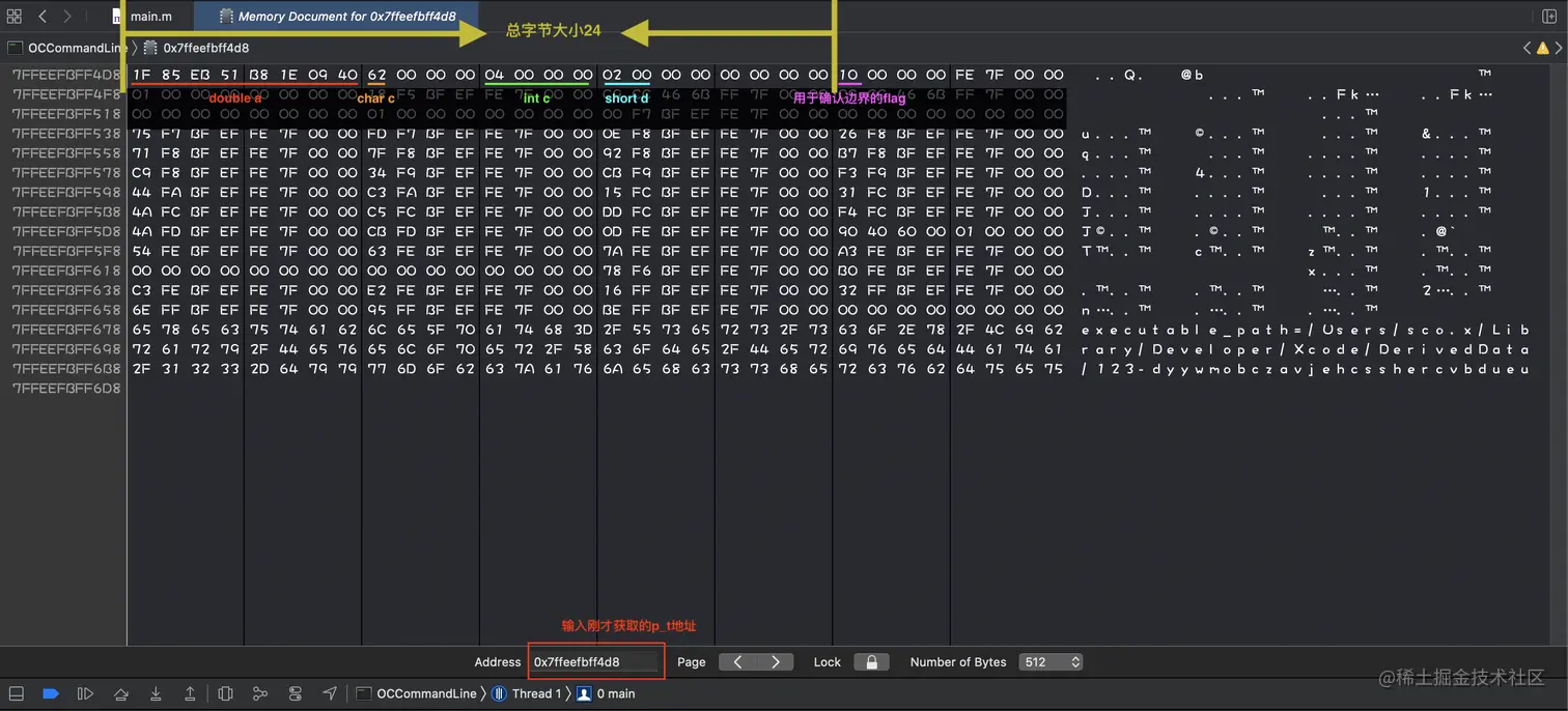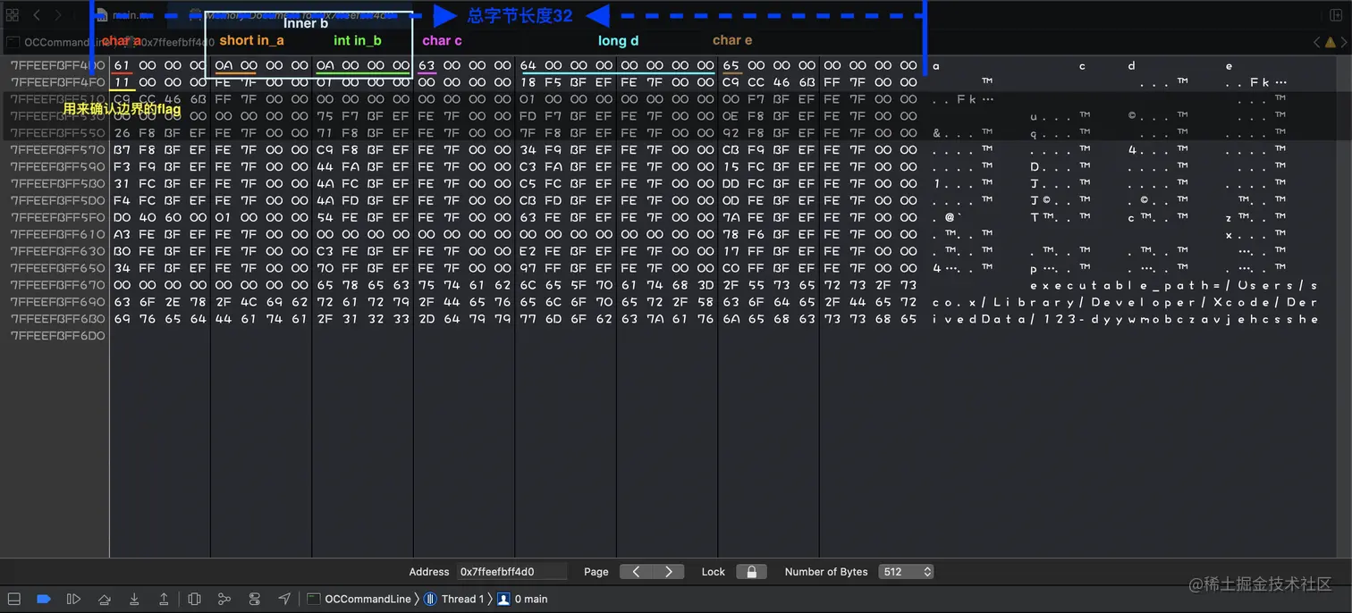 当前编译器默认的内存对齐系数为8,那么这个结构体的sizeof的大小为32。而通过命令得到的main-arm64.cpp文件中的结构体sizeof的大小为24。可以看出xcode在将类转化为结构体时会对结构体成员进行优化。