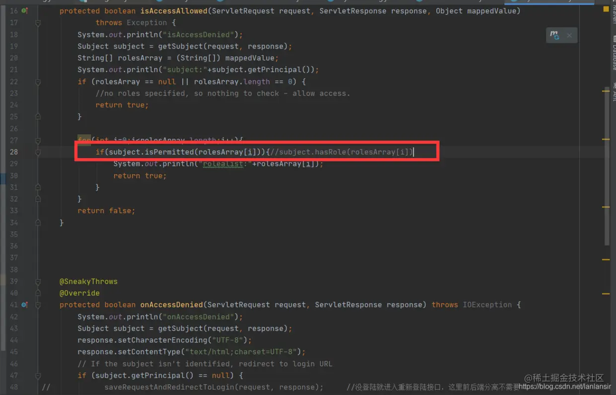 我用的perms所以用subject.isPermitted(rolesArray[i])
