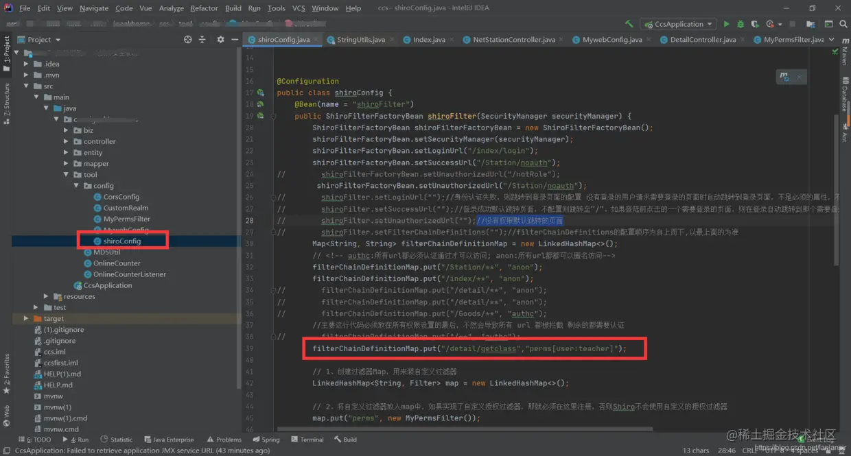 filterChainDefinitionMap.put("/detail/getclass","perms[user:teacher]");