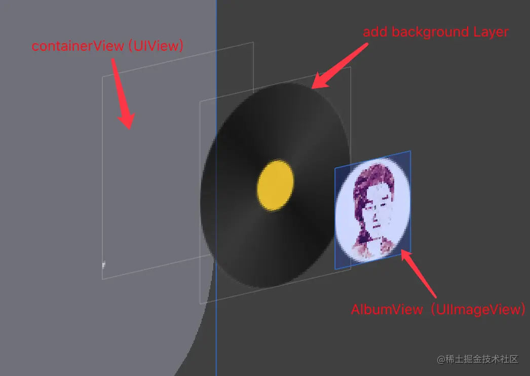 我们在外部调用startAnimation:方法的时候 给self.albumContainer.layer添加旋转动画旋转