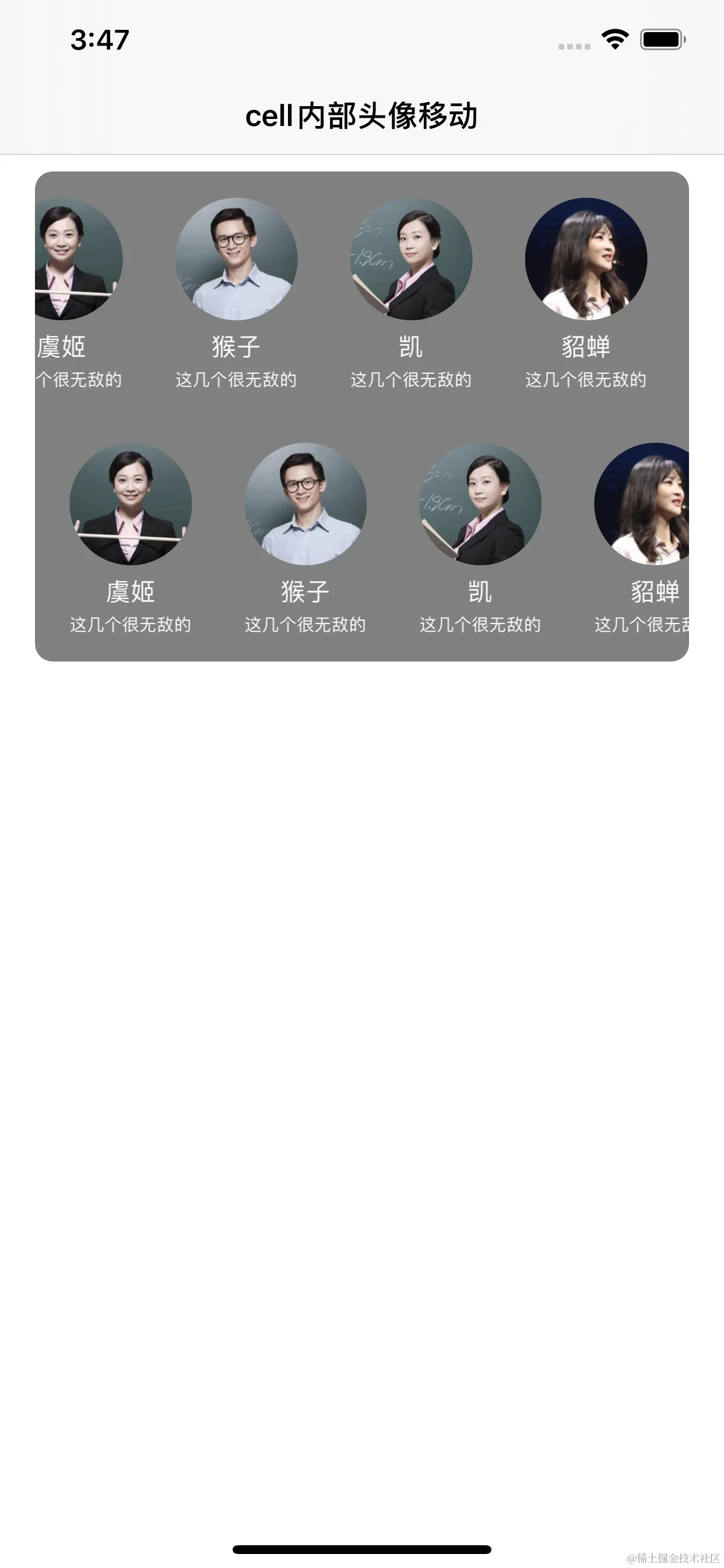 self.title = @"cell内部头像移动"