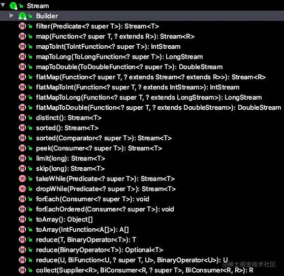 最顶端的接口类。定义了流的常用方法,例如 map、filter、sorted、limit、skip、collect 等。