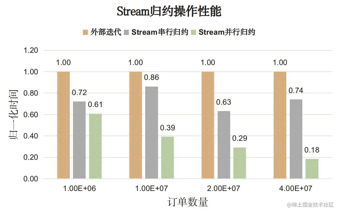 所以,如果出于性能考虑,1. 对于简单操作推荐使用外部迭代手动实现,2. 对于复杂操作,推荐使用Stream API, 3. 在多核情况下,推荐使用并行Stream API来发挥多核优势,4.单核情况下不建议使用并行Stream API。