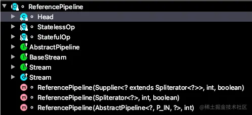 ReferencePipeline 是一个结构类,定义内部类组装了各种操作流,定义了Head、StatelessOp、StatefulOp三个内部类,实现了 BaseStream 与 Stream 的接口方法。