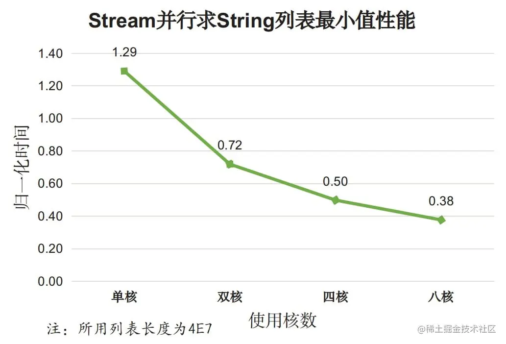 - 随着使用核数的增加,Stream并行效果逐渐变好,多核带来的效果明显。
