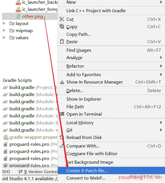 选择Create 9-Patch file…选项之后,会弹出选择保存位置的对话框,可以自己选择修改位置,一般都直接选择OK即可,然后打开这个.9图: