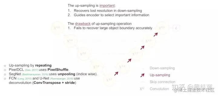 比较直接的回答当然是降采样的理论意义,我简单朗读一下,它可以增加对输入图像的一些小扰动的鲁棒性,比如图像平移,旋转等,减少过拟合的风险,降低运算量,和增加感受野的大小。升采样的最大的作用其实就是把抽象的特征再还原解码到原图的尺寸,最终得到分割结果。